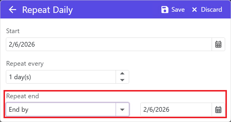 For example, to end the daily recurring appointments after February 6, 2026, do the following,