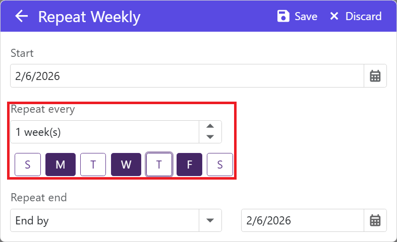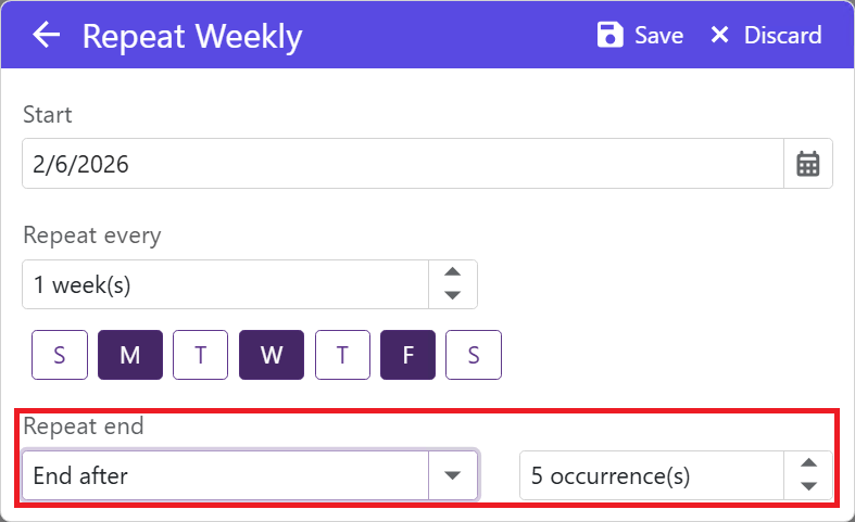 For example, to end the weekly recurring appointments after February 6, 2026, do the following,