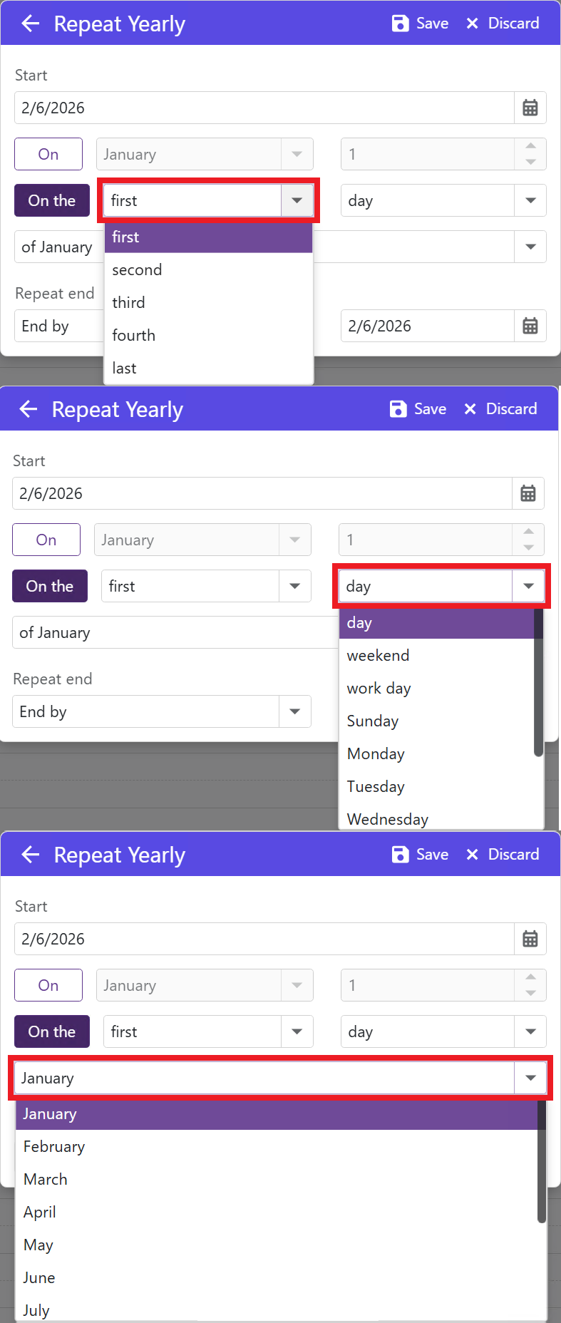 - You can set the yearly recurrence of the appointment by any of the following ways,