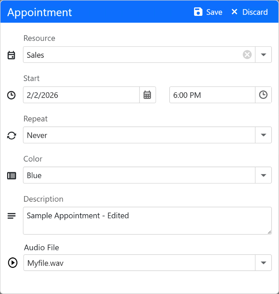 - In the Edit Appointment popup, make the necessary changes and click the Save button to save your changes.
