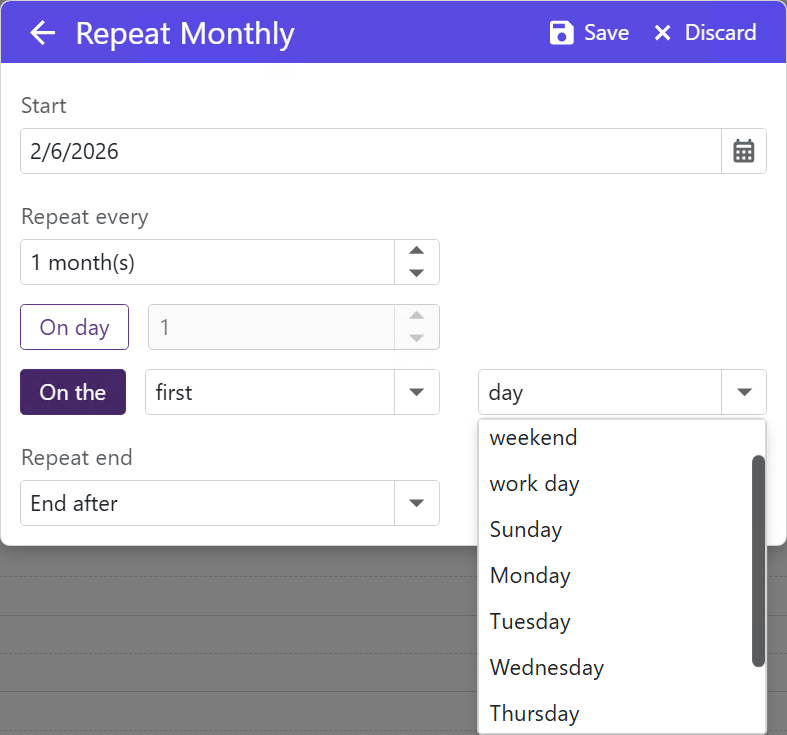For example, to end the monthly recurring appointments after February 6, 2026, do the following,