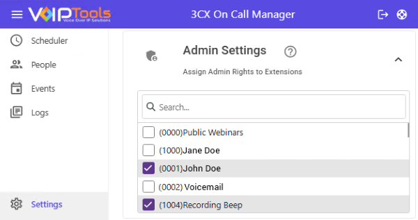 Managers are assigned via the Admin menu to modify schedules and settings.