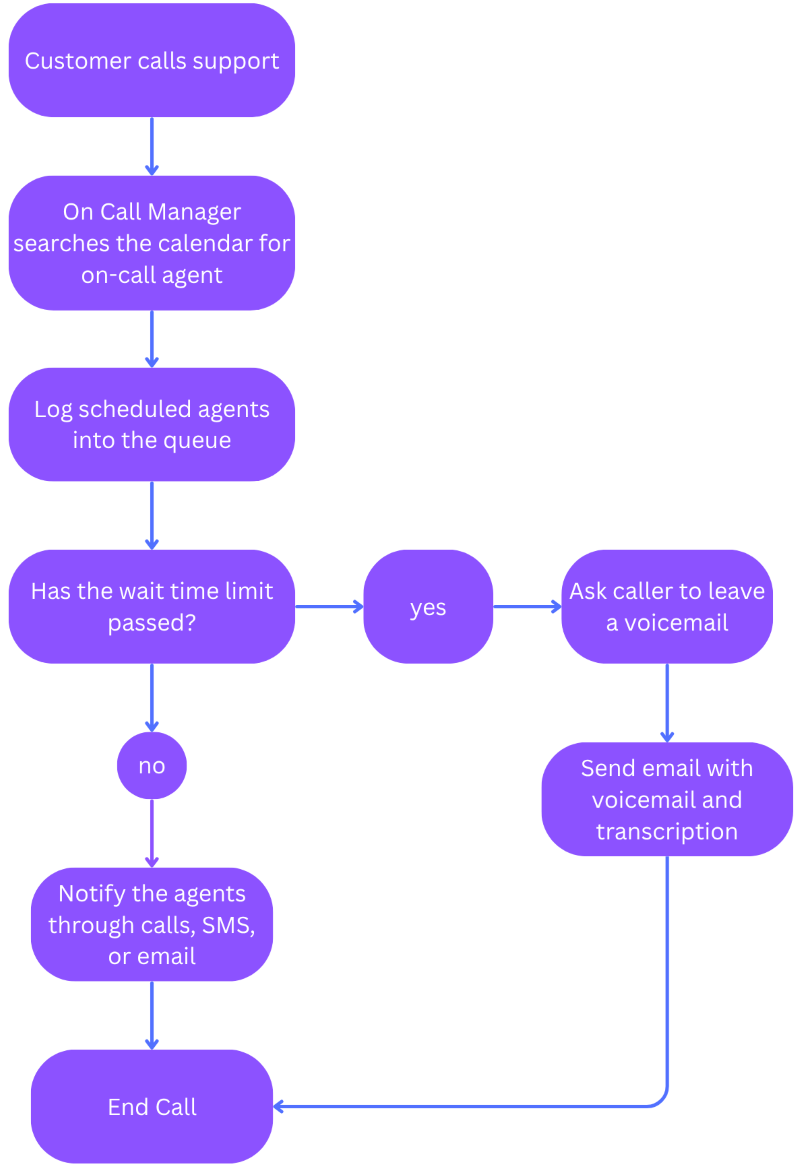 When customers are directed to a support queue, 3CX On Call Manager actively searches a calendar to identify the designated agent responsible for handling after-hours support calls. The software seamlessly logs the assigned agents into the queue, ensuring efficient management. In cases where the maximum queue hold time is exceeded, the caller will be prompted to leave a voicemail. 3CX On Call Manager promptly notifies your staff about the newly generated support request, employing various communication channels. In addition to initiating phone calls to your staff, this program facilitates the transmission of text messages and emails. These notifications contain a comprehensive package, comprising the customer’s voicemail recording and a text transcription for convenient reference by your team.