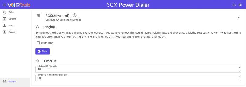 Click the Test Relay Settings to confirm that ‘3CX Power Dialer’ can communicate with the Relay services running on the 3CX server.