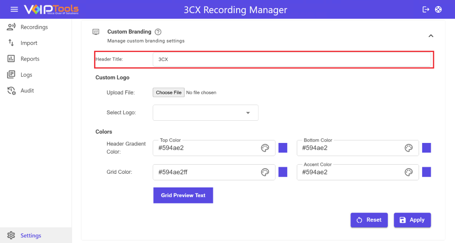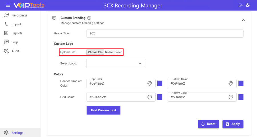 The Import Menu in 3CX Recording Manager lets you add existing recordings to the portal for centralized access and management. This feature is essential for maintaining organized records of past calls. It provides options to archive recordings and adjust file paths, ensuring efficient data retention and access management.