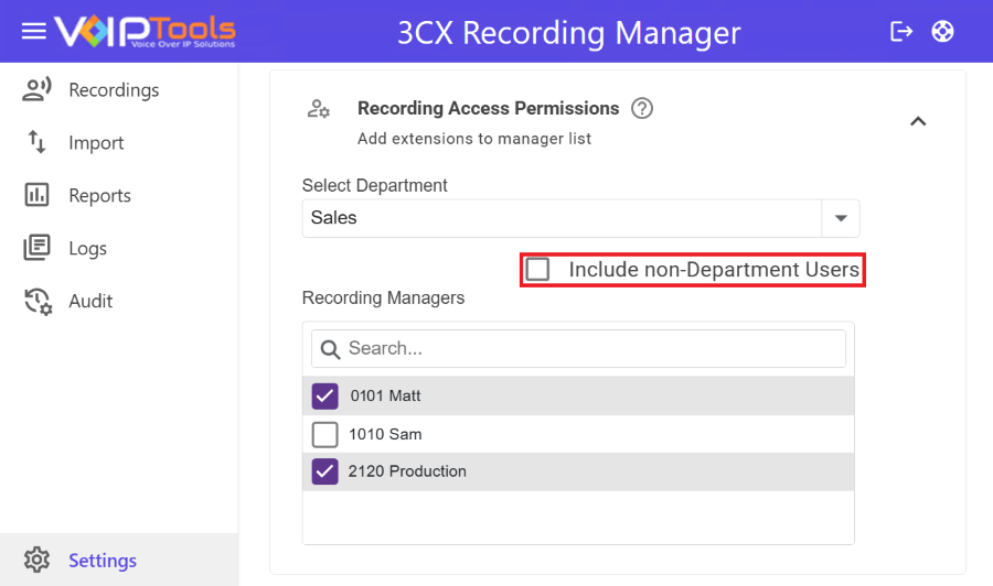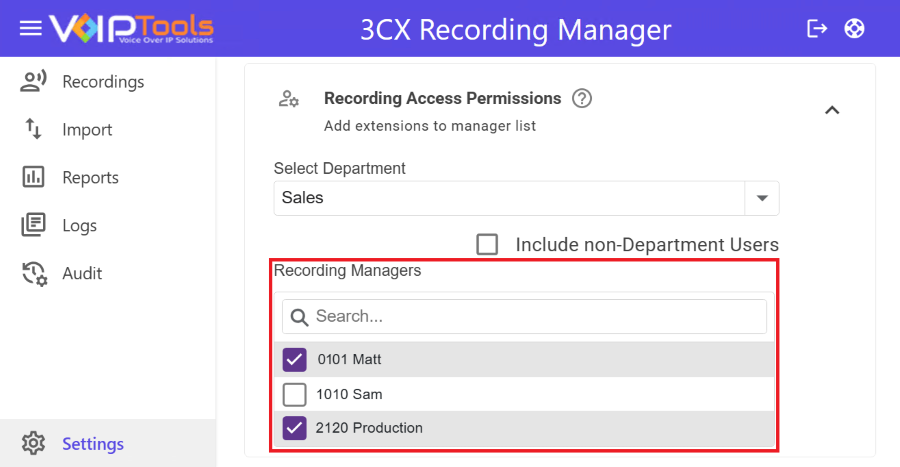 3CX Recording Manager is a powerful plugin for your 3CX/PBX system that lets you easily manage and organize call recordings through a user-friendly web portal. It supports ad-hoc recording for individual calls, monitoring of specific extensions, and full system-wide recording.