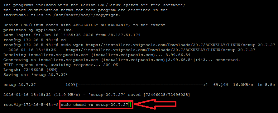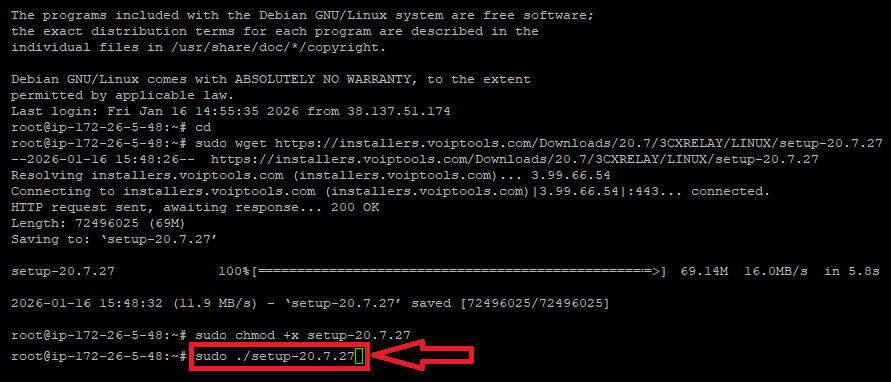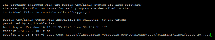 sudo wget https://installers.voiptools.com/Downloads/20.7/3CXRELAY/LINUX/setup-20.7.27
